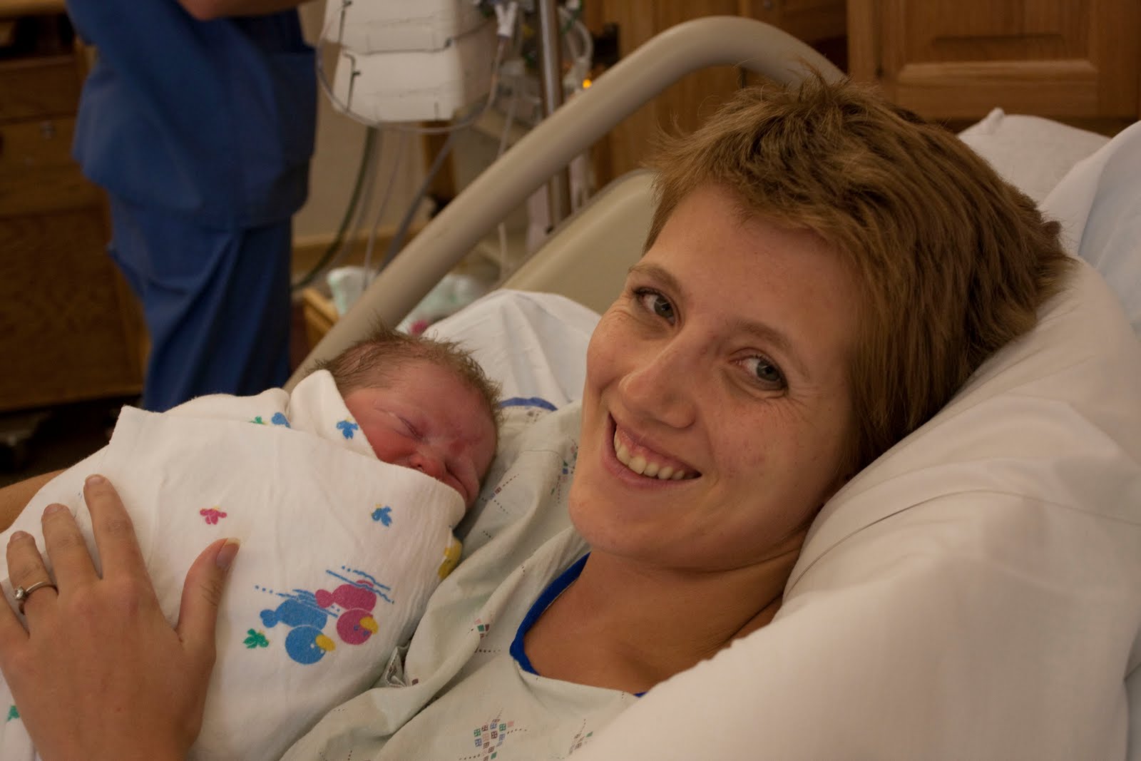 Oliver Smith Hewlett was born September 23, 2010 at 4:54 pm at Sky Lakes Medical Center. He weighed 8 lbs 11.5 oz and was 21 1/4" long. About 4-5 hours after he was born he had trouble breathing and was given medication, an iv, and a tube down his throat to retrieve air out of his stomach. He received an X-ray Thurs night and it was thought the port between the ventricles of his heart had not closed yet, the X-ray Fri. morning showed perhaps the start of pneumonia. The Dr. thought he just had extra fluid in his lungs from the amniotic fluid. It turns out that the fluid was the correct diagnosis, however the Dr. treated him with anti-biotics to be safe. Oliver will be able to come home Sunday morning and is doing well. He still has an IV, but this is just precautionary and he and his mother are doing great. Enjoy the Pics...
